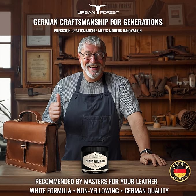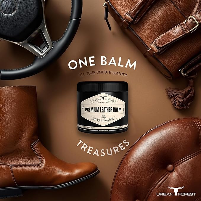 URBAN FOREST Leather Care Conditioner with real Beeswax & Avocado Oil 500 ml - Premium Waterproof Leather Balm for Car Seats, Furniture, Sofa, Couch, Bags, Shoes, Horse Tack, Saddles, Made in Germany