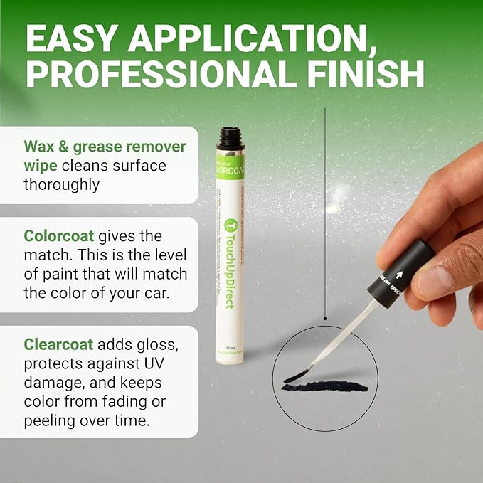 - LOW-VOC, MADE IN THE USA: TouchUpDirect’s low-VOC Colorcoat and Clearcoat formulas are proudly made in the USA. Get professional-looking results with our car scratch repair kit while choosing an eco-conscious option for your vehicle.