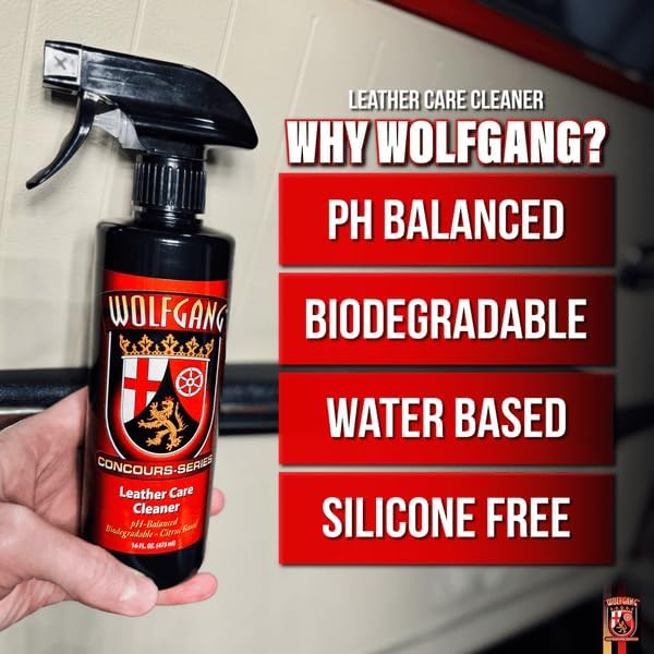 WOLFGANG CONCOURS SERIES Leather Care Cleaner | Cleans Dirt & Oils from Leather | Suitable for Car Interiors, Furniture, Shoes, Boots, & Bags | Gentle Formula | WG-2500 | 16 oz
