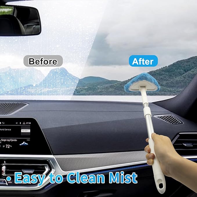 - Fast & Simple to Clean: Adjust the handle to a perfect size first, please dusting to make sure there is not large grand sand before cleaning. Then wipe the windshield in one direction(Z-shaped is good). In addition, you can spray some glass water on the area to be cleaned, which is effect to clean tougher stains. No need for harsh chemicals. Not only interior but exterior cleaning are easy.