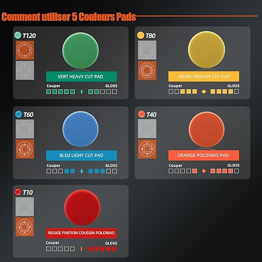 - [T40 Orange Medium-Cut Polishing Pad]: T40 Orange Medium-Cut Foam Pad is Light Cutting Pad, It's Can Remove 2000# Sanding Disc Marks, Fine Scratches & Light Oxidation, It's Can Work With SPTA Medium Cut Polishing Compound ,Ideal For Rotary And DA Car Polisher.