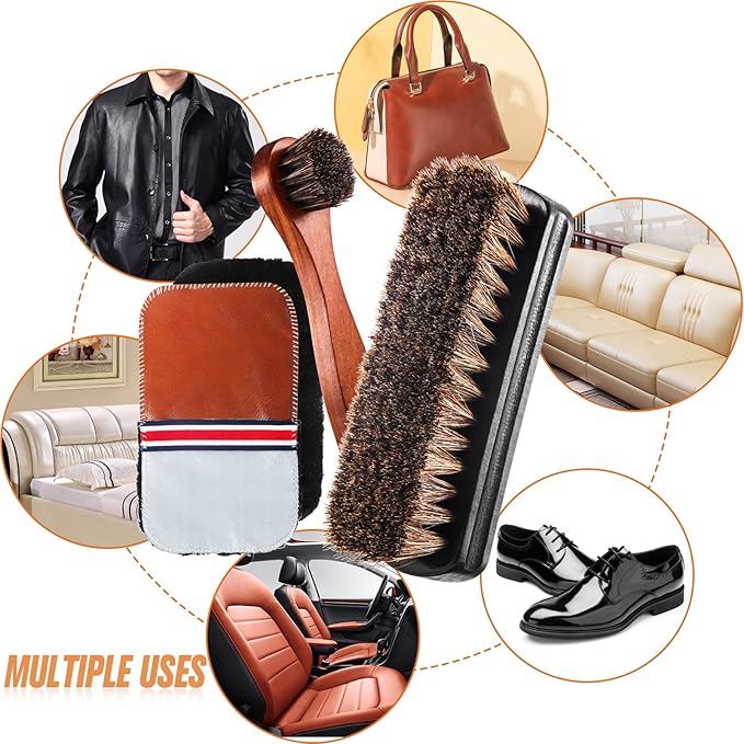 - Material - The brush is made of horsehair and wood, cleaning and shining your shoes the cloth is made of microfiber, this set could meet your daily needs of different footwear for an amazing performance
