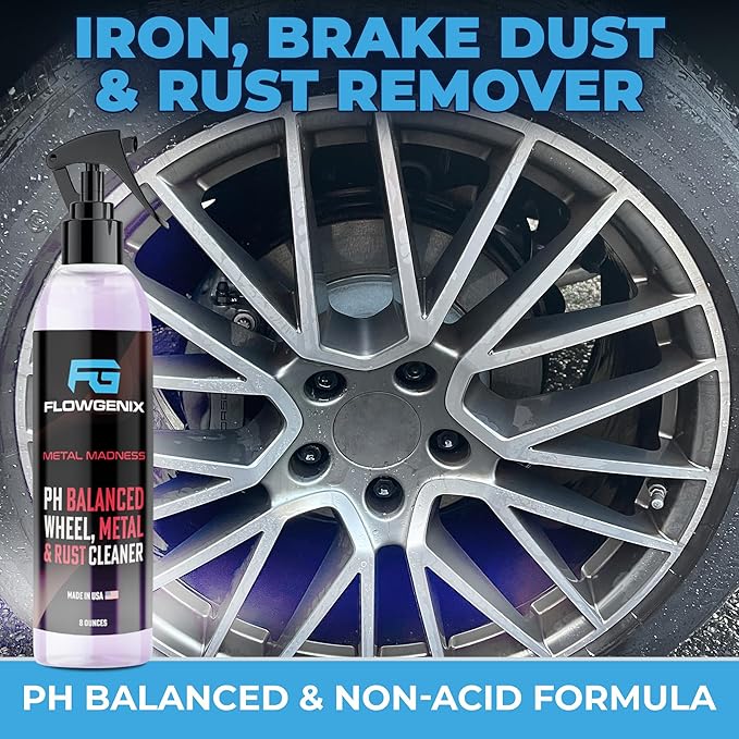 - ✅ RUST AND BRAKE DUST REMOVER: Metal Madness is an all-new iron, brake dust, and car rim cleaner. It dissolves and removes embedded iron particles, environmental fallout, dust, and grit from painted surfaces and wheels caused by braking.