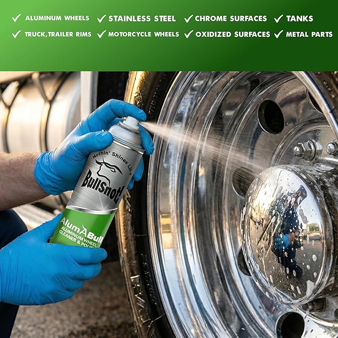 - Cleans & Restores Shine: AlumABull quickly removes tarnish, oxidation, and dirt, restoring a brilliant, glossy finish to aluminum wheels, stainless steel, and chrome surfaces.