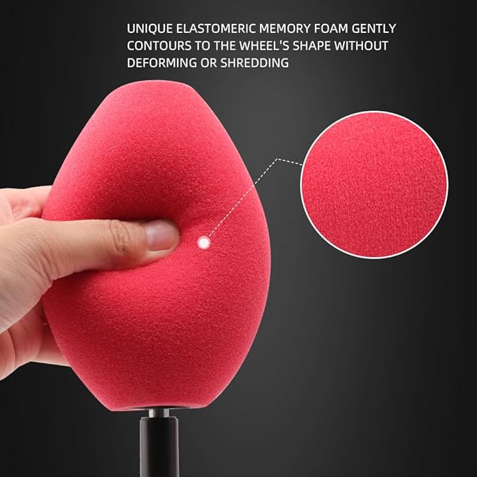 - ◆ High quality material ◆ With Unique elastomeric memory foam gently contours to the wheel's shape without deforming or shredding. The aluminum body and sponge are both the easy to clean materials.