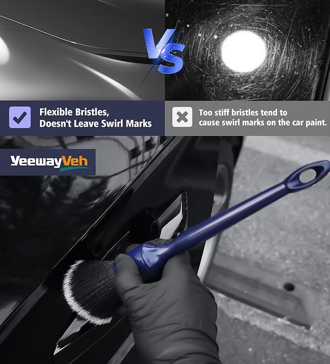 - Car Detailing Brush Kit: Ultra soft no scratch bristles detail brush suitable for grille, windows, badges, rubber strips, wheels, lug nut, engine bay dust, conditioning vents, dashboard, centre console, leather seats, door handle gaps, emblems, storage and wheels and so on.