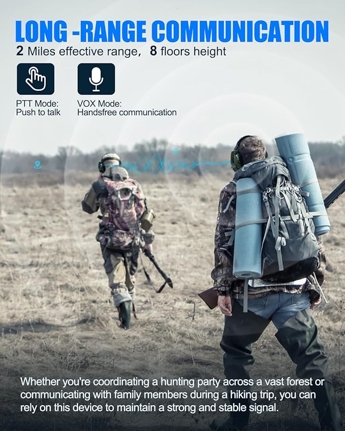 - Seamless Compatibility with Shooting Earmuffs: It is compatible with Howard Leight Impact Sport Series/EM054 shooting earmuffs/PROHEAR 030, 036 series, requiring no complicated setup steps for quick connection. The intuitive user interface and concise button layout allow you to easily master various functions and quickly get started. Whether you are a professional user or a beginner, you can easily handle this walkie talkie