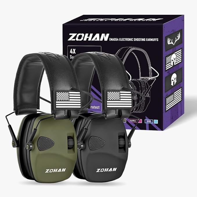 ZOHAN UPGRATED EM054 Electronic Shooting Ear Protection with 4X Sound Amplification, Slim Active Noise Reduction Earmuffs for Gun Range