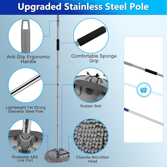 - 2-in-1 Multi-Purpose Car Cleaning Mop Kit: Soft bristles without scratches with protective rubber bumper. High-quality soft PVC bristles protect car surfaces from scratches during cleaning. Rubber squeegee quickly removes water stains without leaving any marks