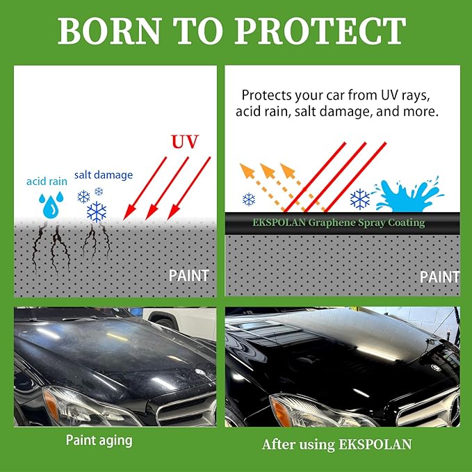 - ✅ Nano-Fusion Triple Shield: Our quick coat is your all-in-one ceramic coating hydrophobic spray.Engineered with graphene, SiO₂ ceramic and titanium dioxide, our advanced spray forms an ultra-strong nanocoating. Lab-tested to resist salt, oxidation and UV damage, it delivers pro-level protection and long-lasting durability.