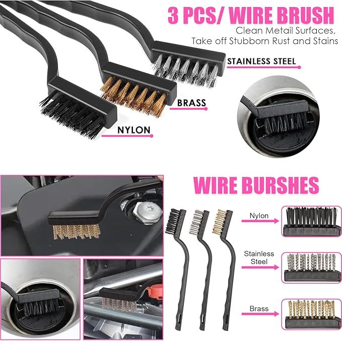 - Professional Brush Kit: 5 precision-sized detailing brushes tackle every surface - small brush cleans crevices/lug nuts, medium brush handles seats/dashboards, large brush efficiently scrubs wheels/engine bays. Complete with special vent and dash dusting tools