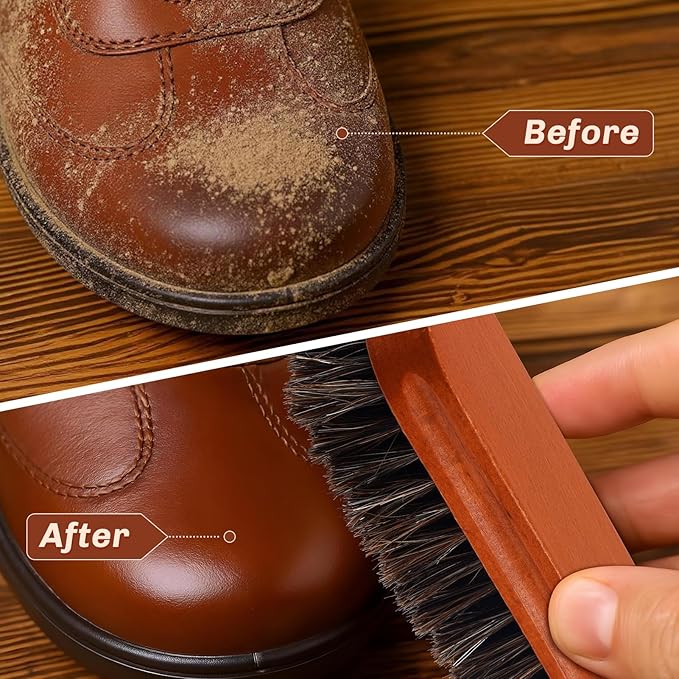 4 Pcs Horsehair Shine Shoes Brush Kit Polish Dauber Applicators Cleaning Leather Shoes Boots Care Brushes Suede Cleaner Brush with Microfiber Shoe Cloth(Brown Style A)