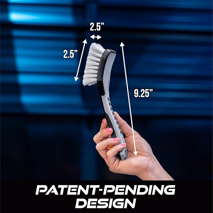 - Scrub brush for cars with upholstery or seat covers, measuring 9.3 x 2.5 x 2.5 inches with an ergonomic design