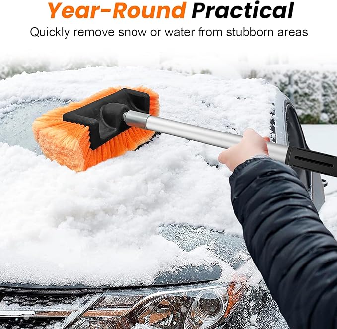 - 【12" Ultimate Anti-Scratch Car Wash Brush】Come with “flocked” super soft bristles wash head, won't scratch paint. The 5-sided, angled-face brush is optimally designed, scrubbing away hard-to-reach grease and grime. Also Can be used as a car brush or dip brush if hose attachment is attached.