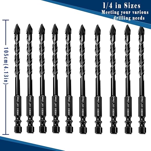 10pc 1/4” Black Ceramic Tile Drill Bit, 6mm Porcelain Drill Bit Concrete Drill Bit for Glass,Brick,Plastic,Cement,Wood,Ceramic,Metal,Marble.