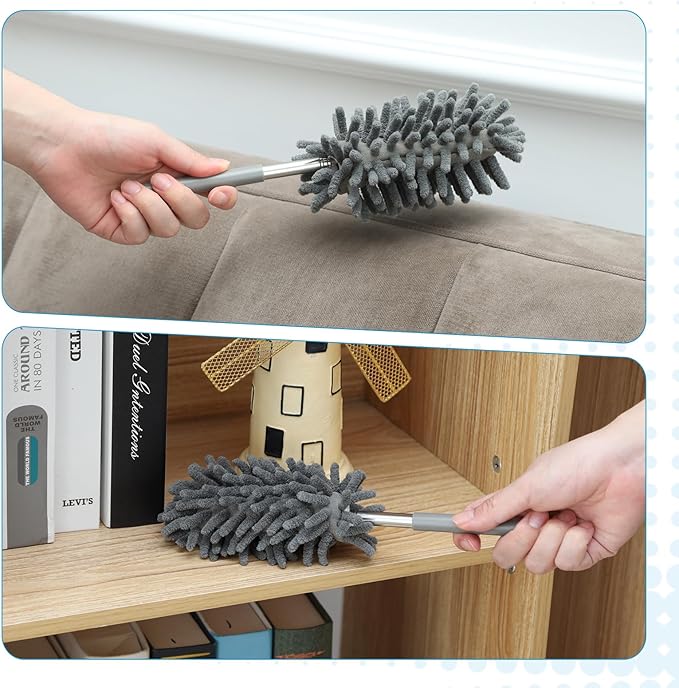 - Adjustable Length: The cleaning duster's minimum length is 11 inches and can be extended to 30 inches. This adjustable design allows you to flexibly meet the needs of different heights and angles when cleaning, making it easy to clean hard-to-reach places such as ceilings, corners, and high windows.