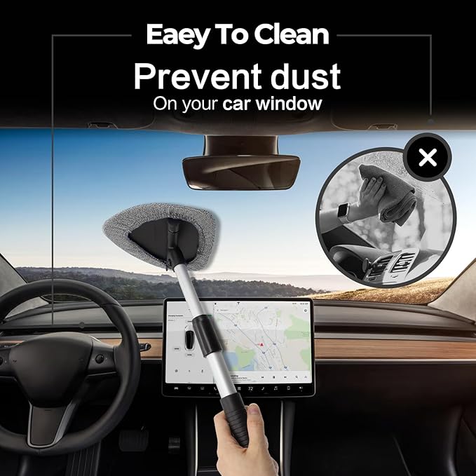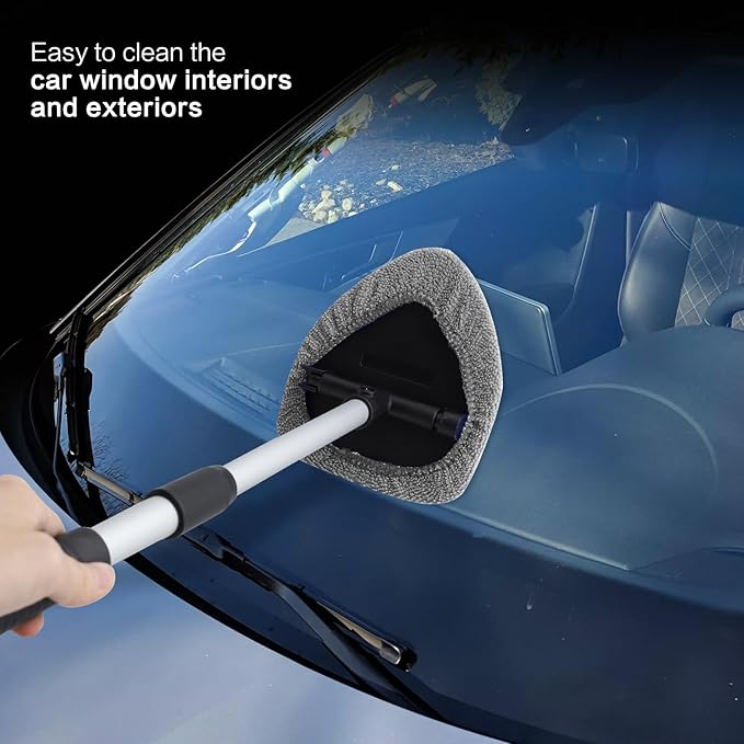 - Practical and Adjustable: The interior car window cleaner boasts a 180-degree rotating head to access hard-to-reach areas behind dashboards. No more hurting your back. The twist lock on the handle is tight, and it stays extended all the way.