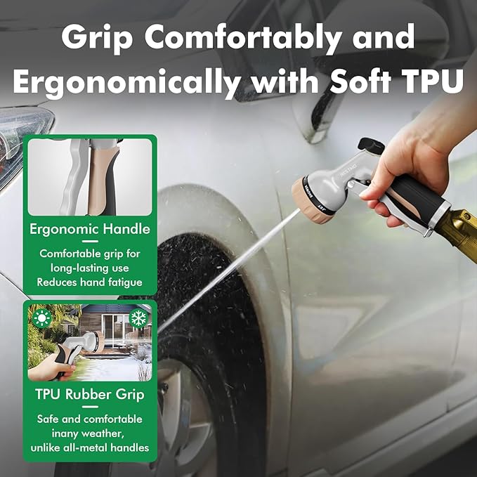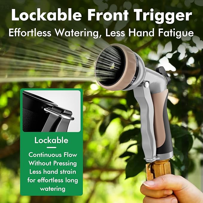- ERGONOMIC DESIGN: Coated with the soft TPU and non-slip grip, this low-profile hose nozzle adds comfort and avoids hand fatigue. The pistol grip front trigger is easy to hold and can be locked anytime.