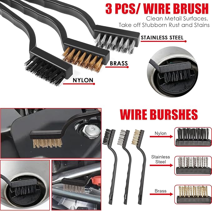- Professional Brush Kit: 3 precision-sized detailing brushes tackle every surface - small brush cleans crevices/lug nuts, medium brush handles seats/dashboards, large brush efficiently scrubs wheels/engine bays. Complete with special vent and dash dusting tools